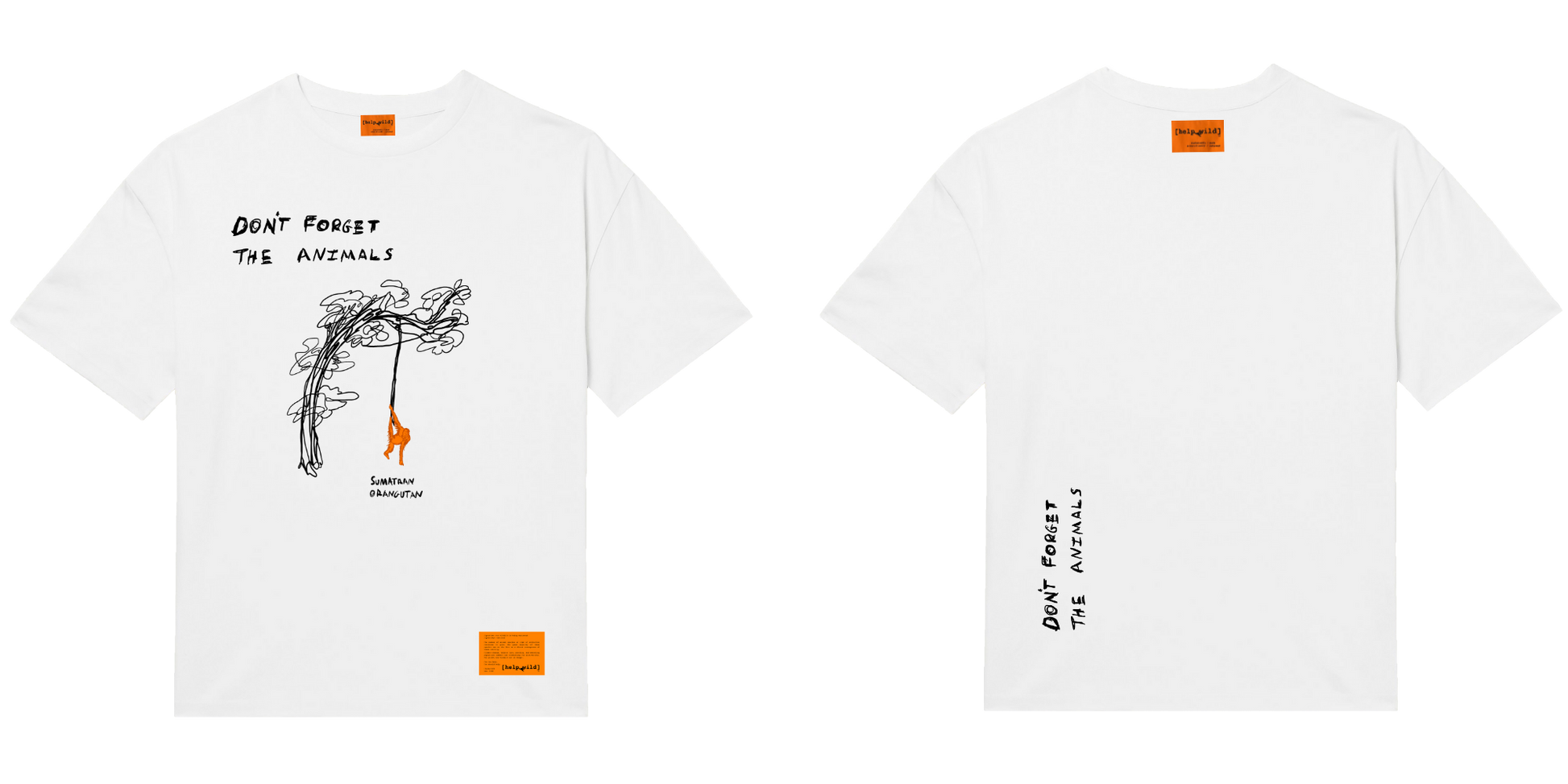 Accented with bold Orangutan designs on front and side, and our [helpwild] label detailing at the neck and bottom.