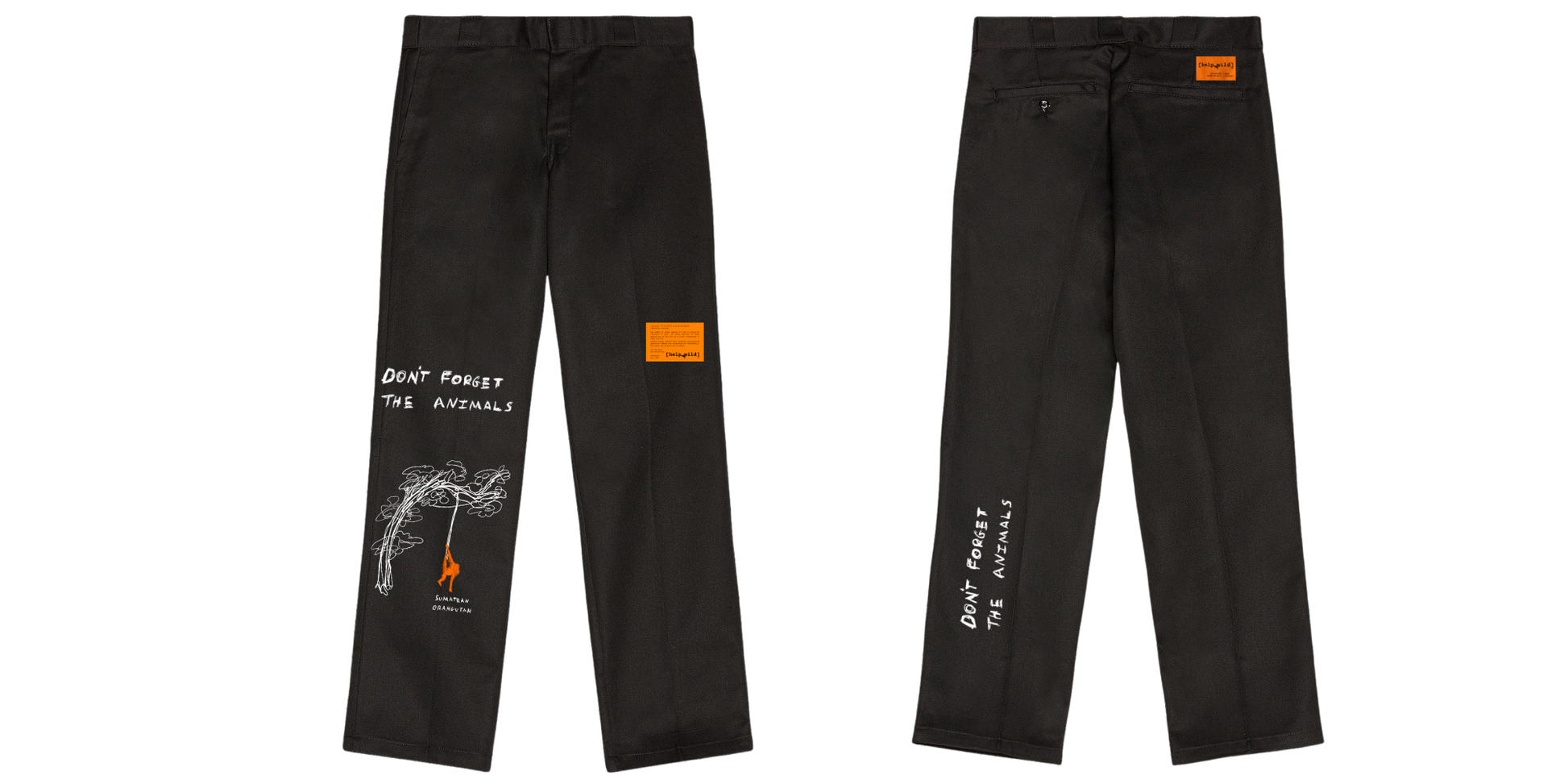 Boldly screen-printed with our Orangutan artwork on the front and back, and accented with our [helpwild] label detailing on the thigh and back waist make these pants a strong statement piece that we're proud to make, and happy to share with you.