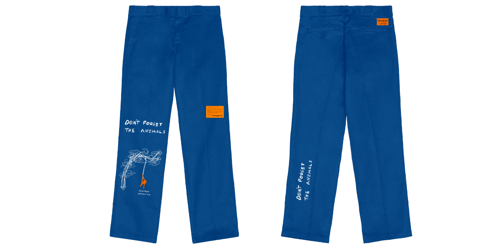 Boldly screen-printed with our Orangutan artwork on the front and back, and accented with our [helpwild] label detailing on the thigh and back waist make these pants a strong statement piece that we're proud to make, and happy to share with you.